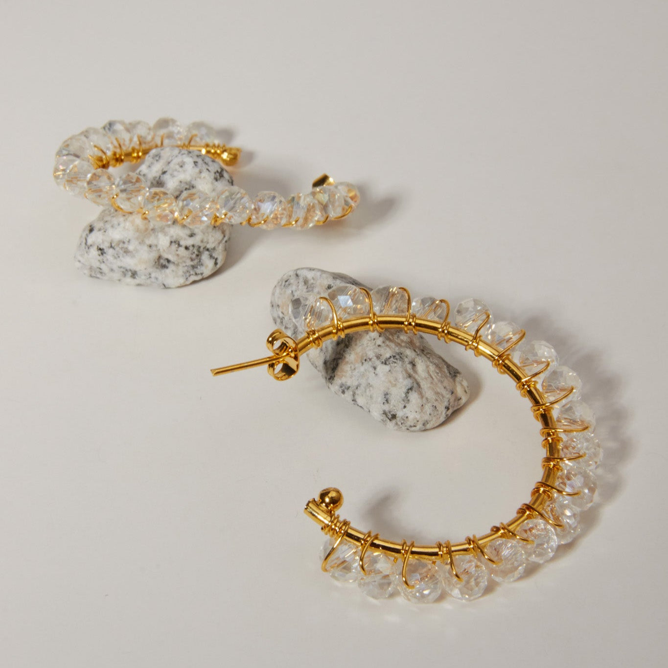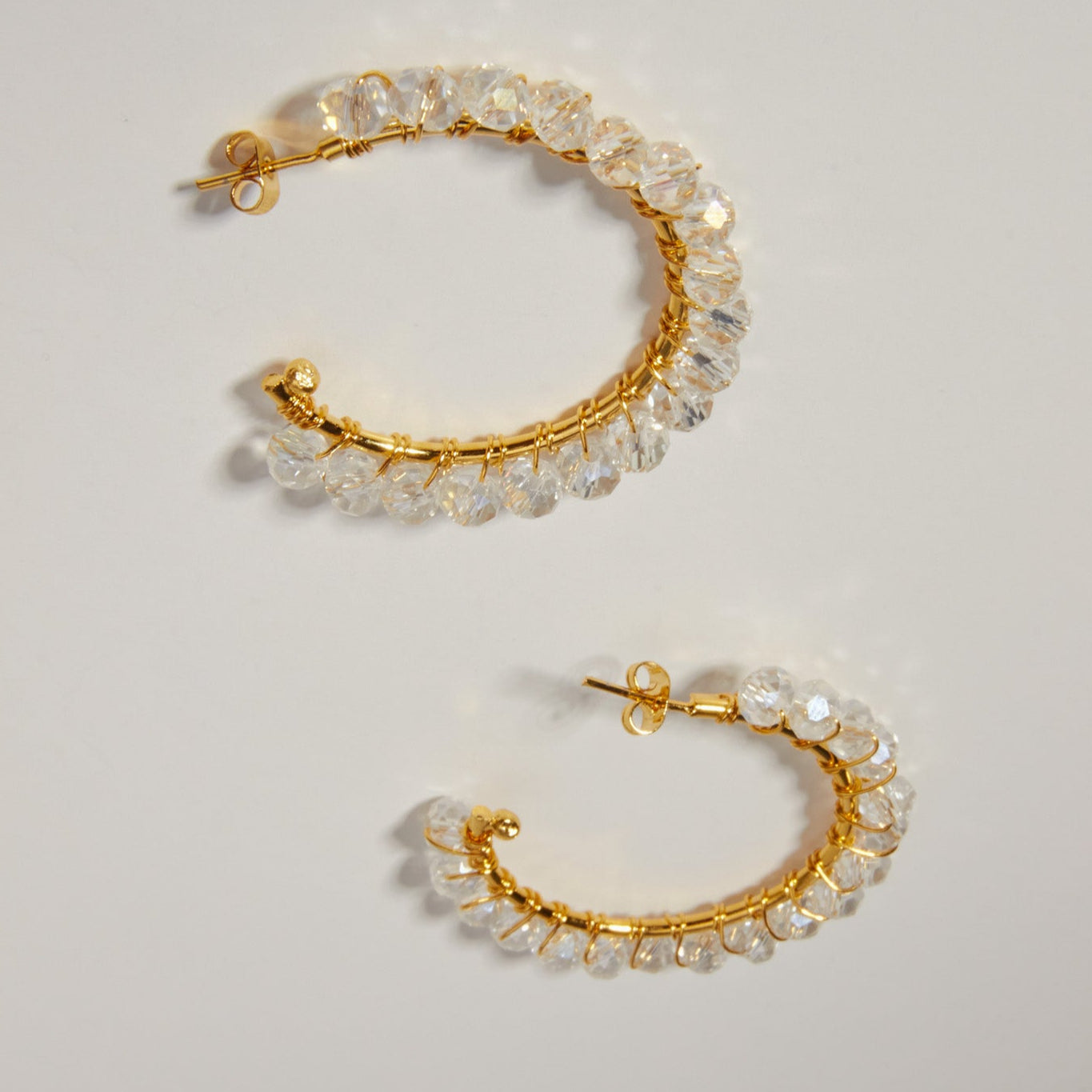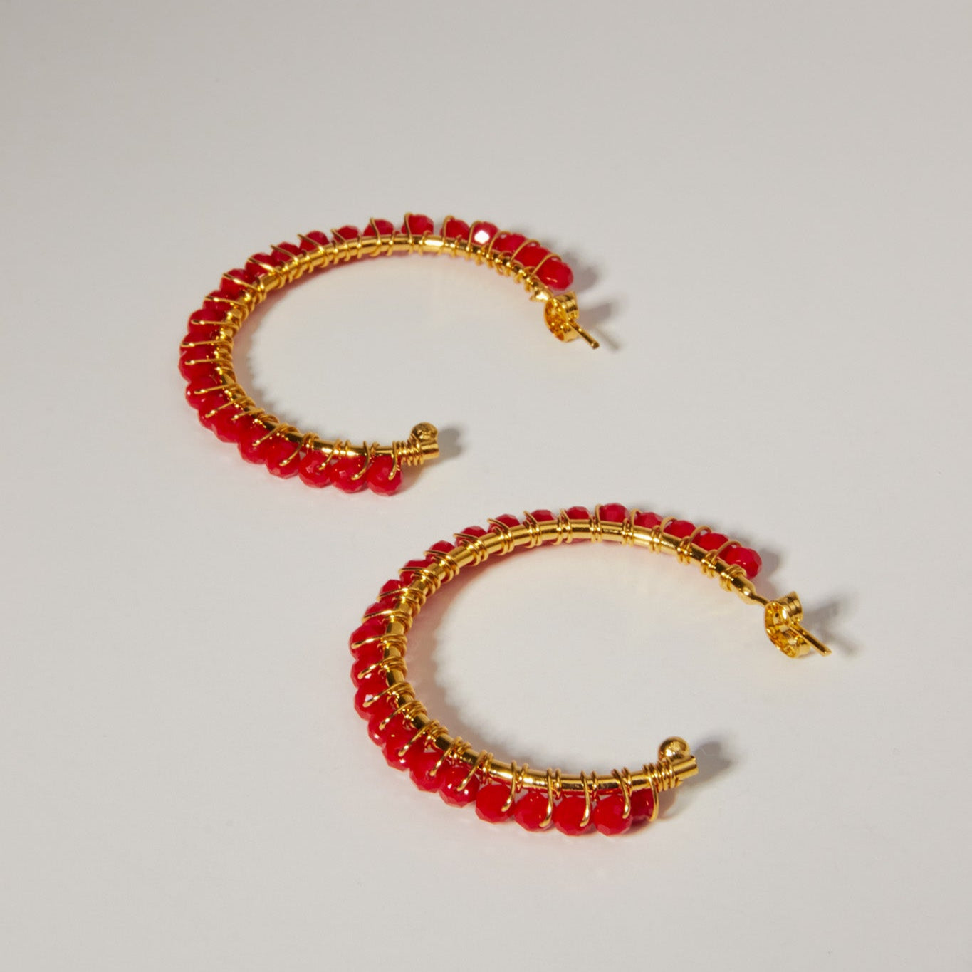 Realizado con 25 cuentas de semillas de colores, este pendiente de aro es una pieza única que añade un toque de originalidad y brillo a cualquier look.