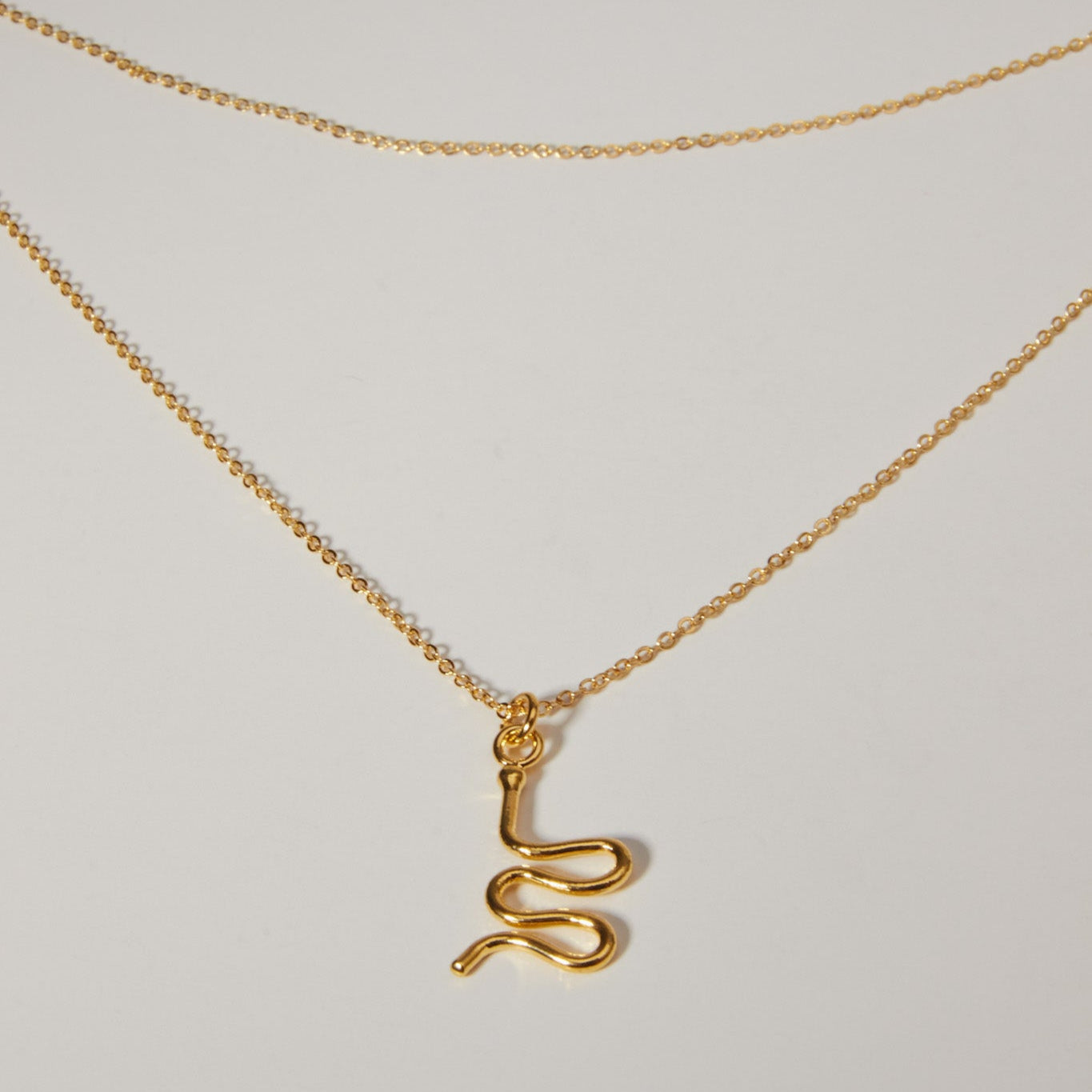 This snake double-layer necklace adds a unique, edgy touch to any outfit while remaining delicate and refined. Its layered design creates depth, making it the perfect statement piece for any look.