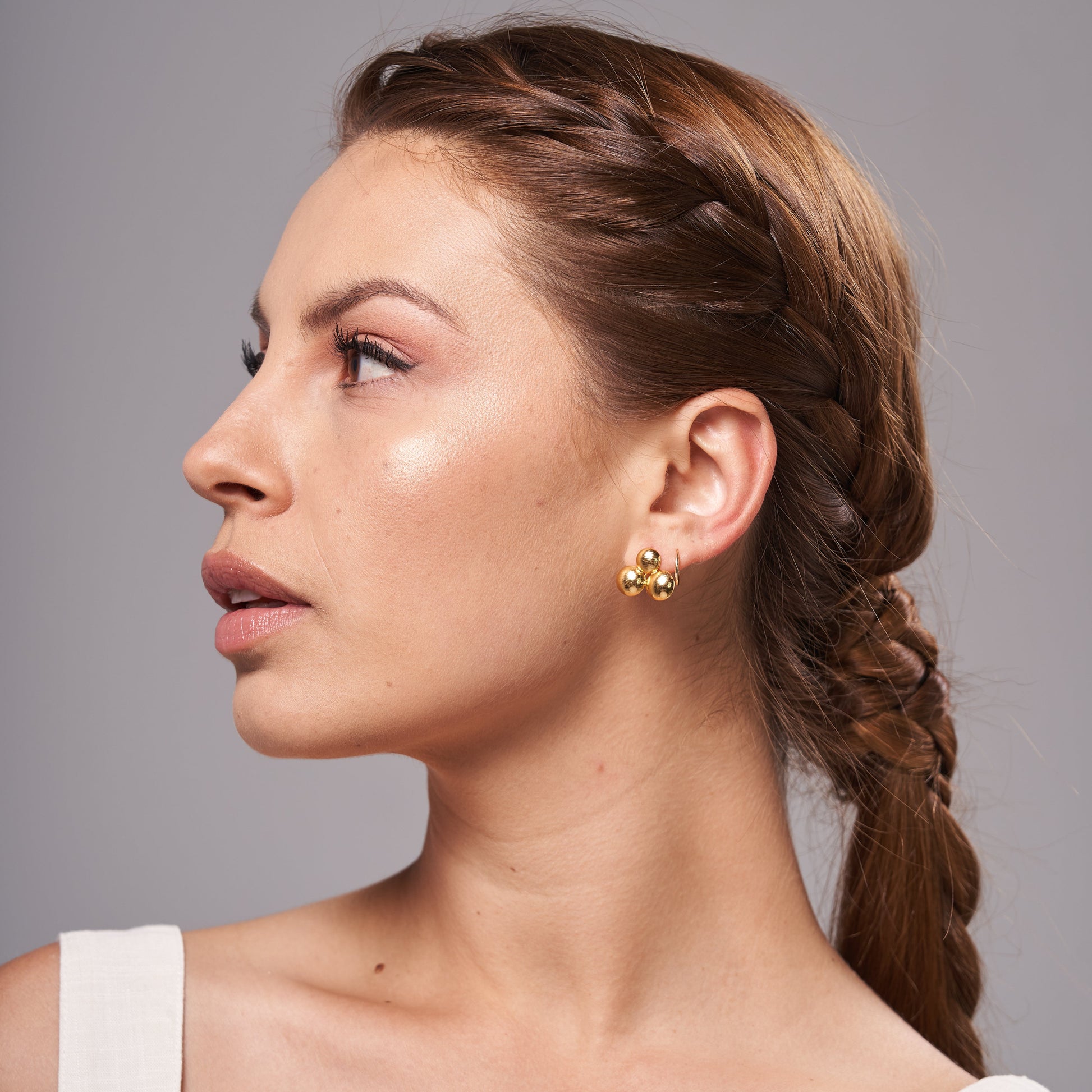 Elegant and minimal, these triple-ball studs are designed to be your everyday essential. The trio of polished spheres creates just enough detail to feel unique—without ever being too much. Whether you’re heading to work or dressing up a simple outfit, they add the perfect finishing touch.