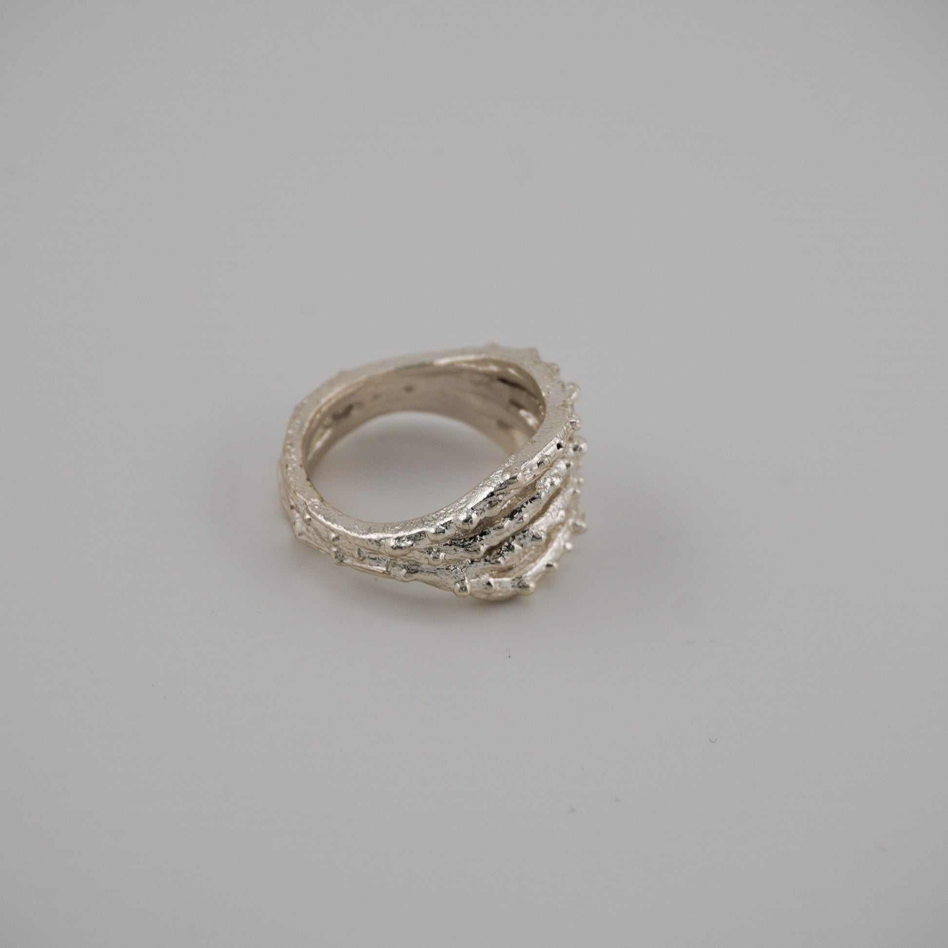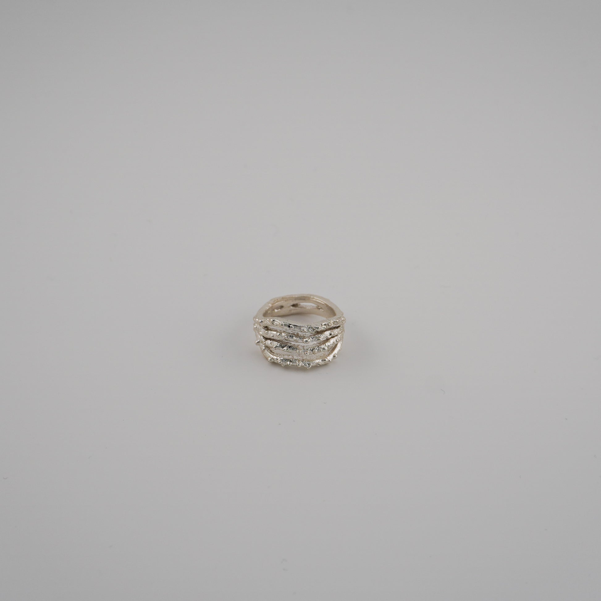With its irregular shape and textured relief, this ring evokes corals shaped by time and water. It’s a tribute to the silent strength of the ocean, to the shared memories of family trips, to laughter among friends, and to the soft power that lives within each of us.