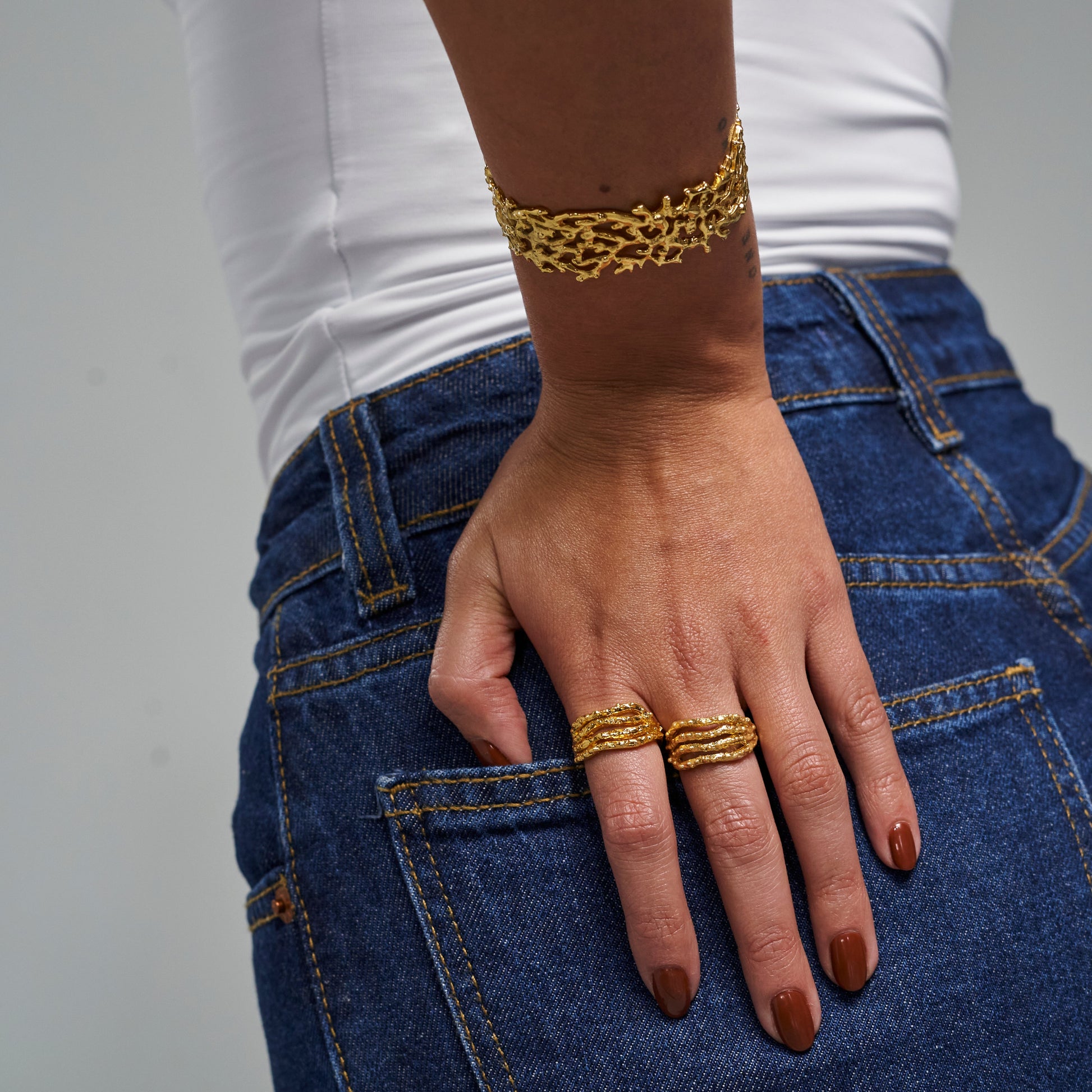 This ring is born from the organic texture of the coral reefs in the Corales del Rosario National Natural Park, a place that preserves the natural beauty of the Colombian Caribbean and reminds us of the importance of our roots: the sea, the land, and the women who inspire us.